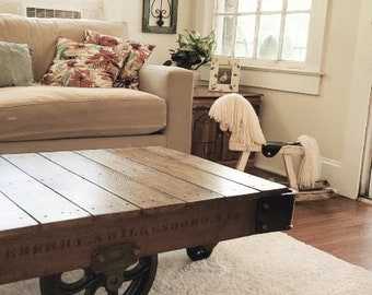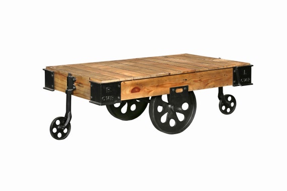 Rail Cart Coffee Table : Rail Cart Coffee Table - Find the perfect home furnishings at hayneedle, where you can buy online while you explore our room designs and curated looks for tips, ideas & inspiration to help you along the way.. The overall dimensions of this factory cart coffee table are 59 inches wide, 36 inches high and 8 inches deep. 1x8 boards cut at 43 (long aprons, 2 boards) 1x8 boards cut at 31 1/2 (short aprons, 2 boards) 2x4 boards cut at 31 1/2 (dividers, 2 boards) These antique carts come from old furniture and textile factories right here in north carolina! Antique furniture factory carts, manufactured by the lineberry foundry and machine company in north wilkesboro, north carolina. Factory cart coffee table vintage industrial cart railroad cart industrial table lineberry cart.