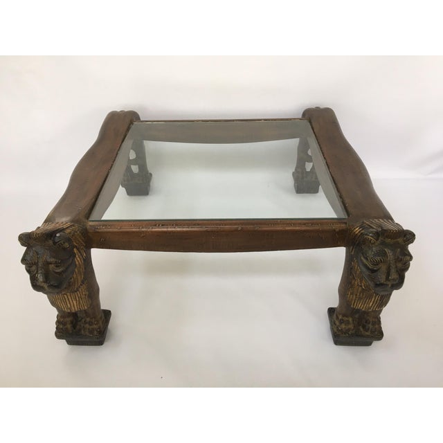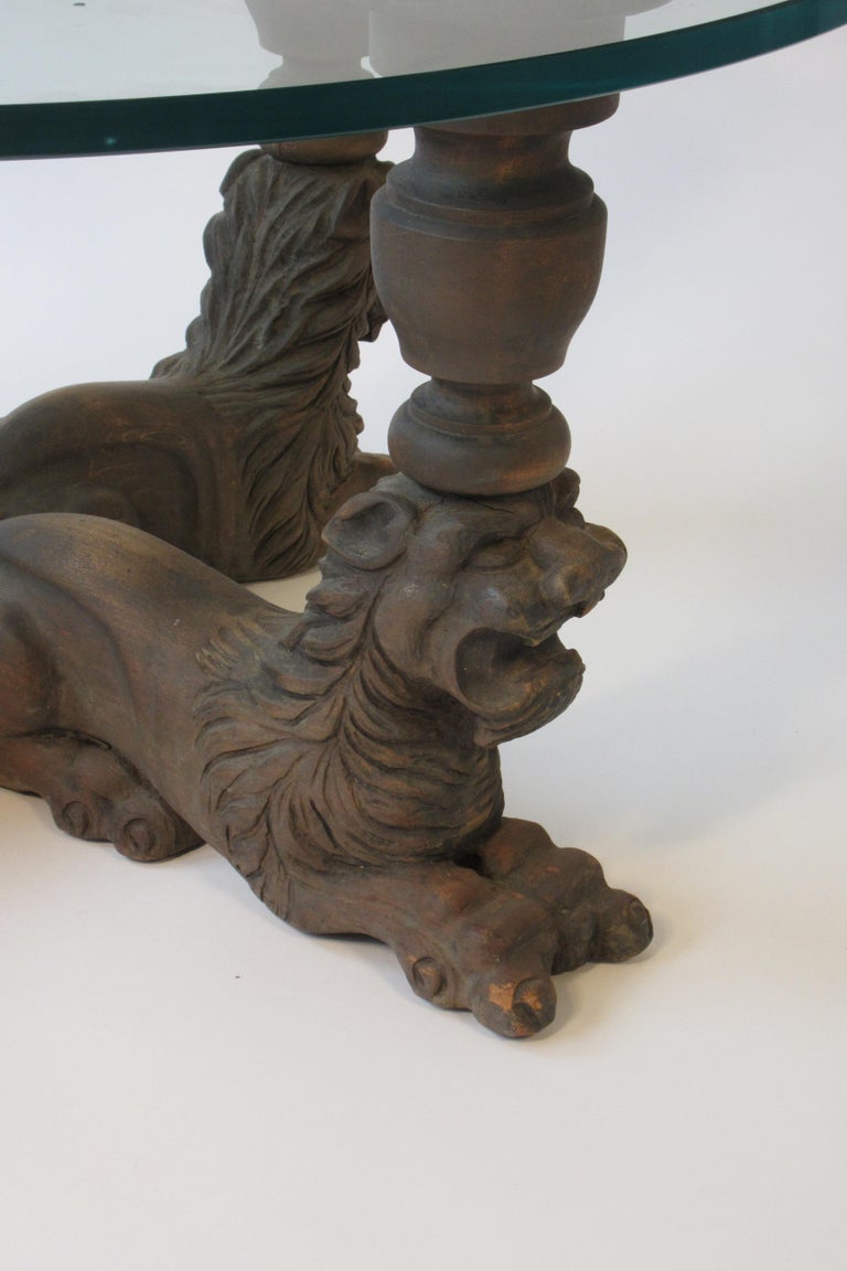 Square lucite coffee table with gilt plastic lion heads and claw feet. Simple circles in two heights. Crouching lion table animal coffee egyptian furniture kitchen door handles glass and brass head 395 carved wood lion coffee table lot glass top. It is paper mache and signed by the artist. See more ideas about lion coffee, coffee, kona coffee.